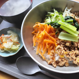 月によって変わる丼ものメニューは、その月の曜日に合わせて楽しめます。例えば…月曜日は「焼き鳥丼」、火曜日は「ソースカツ丼」というように。お気に入りの丼ものを見つけてみてね。